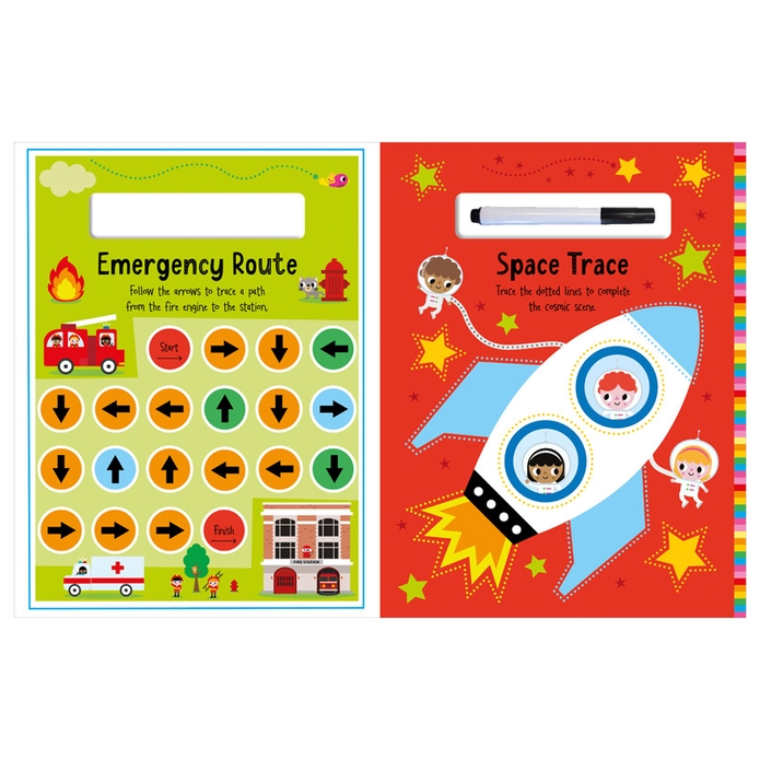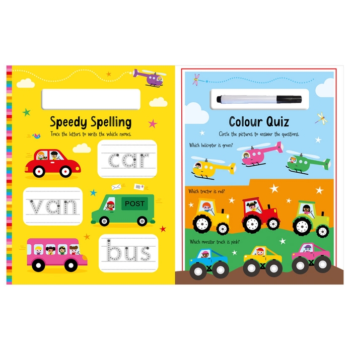 This wipe-clean vehicles activity book is perfect for little ones to practise pen control and improve problem-solving skills. It uses bright, bold illustrations and enjoyable activities to encourage children to develop their tracing, writing, matching and counting abilities in a fun, engaging way. With reusable wipe-clean pages and a wipe-clean pen for plenty of activity fun again and again.