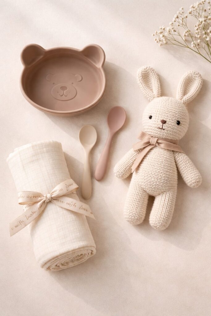 We select materials that are safe and enduring. Silicone for feeding, because it’s gentle, long-lasting, and easy to care for. Wooden toys because they are timeless, sturdy and naturally beautiful. Soft textiles for their comfort and keepsake quality.